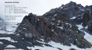 Terminada la actividad técnica, se realizó una actividad deportiva de escalada y exploración donde se pudo hacer un aporte al lugar estableciendo rutas de escalada con sus reuniones y una primera ascensión en una de las agujas del glaciar del Brujo.