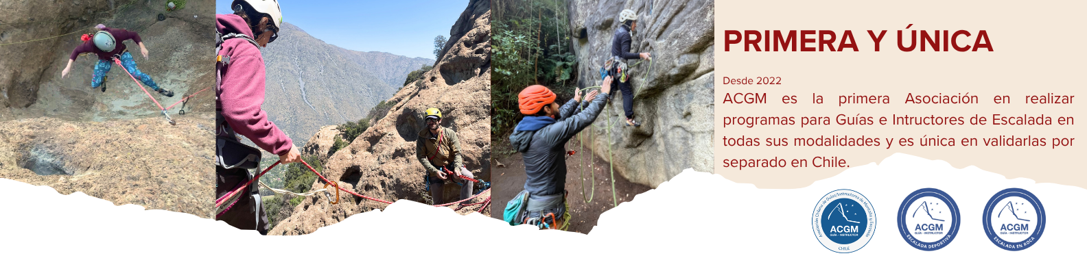 La Asociación Chilena de Guías Instructores de Montaña y Escalada (ACGM) desarrolla desde el 2022 procesos para Guías Instructores en las distintas especialidades de Escalada con Estándar Nacional ACGM orientado a entregar herramientas sólidas para el ejercicio del guiado en diversos entornos del territorio nacional.